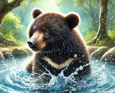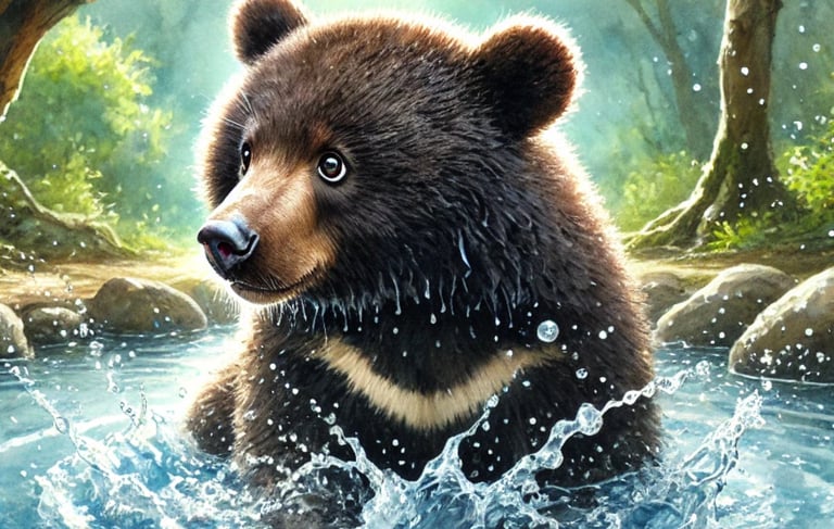 Moon Bear Splashing in a Pool