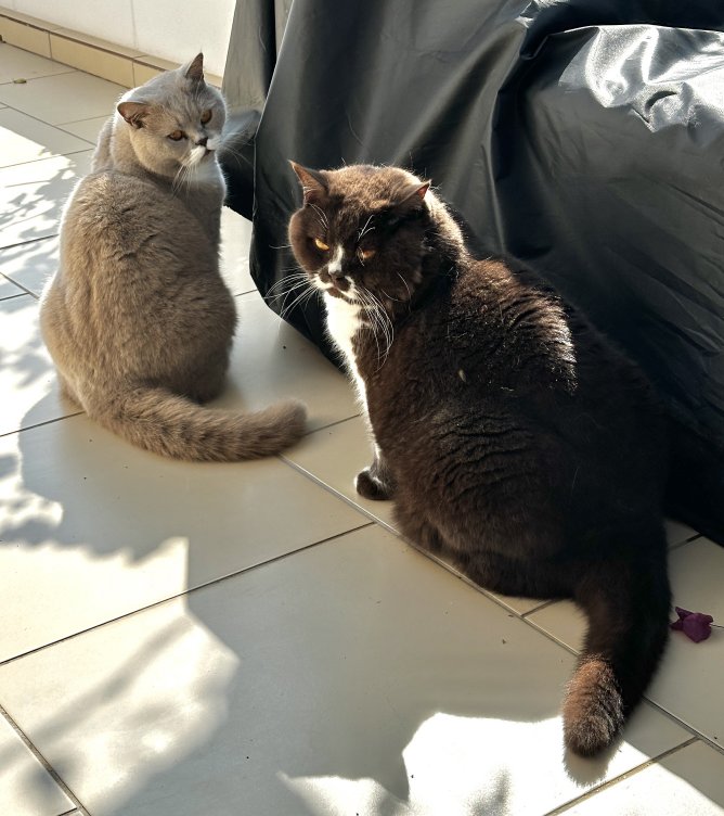 We can create a photo image of your pet, or alternately we can create cartoon versions. Here are some fun versions of my own cats.